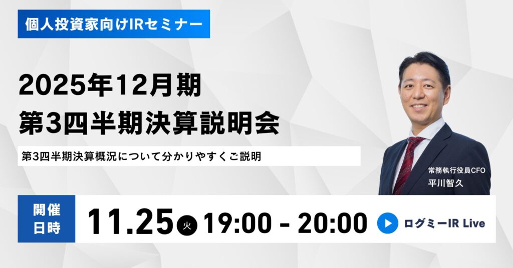 【ログミー IR Live】第3四半期決算説明会のお知らせ(11月25日実施)